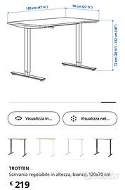 Vendo scrivania ikea Trotten. L'altezza regolabile da 70 a 120 cm.