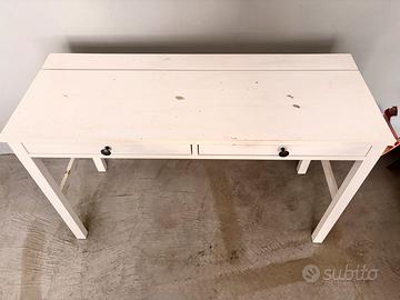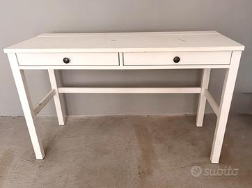 Vendo scrivania IKEA HEMNES 120x47 con due cassetti e contenitore porta cavi. Presenta qualche segno di usura come mostrano le foto