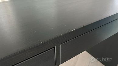 Vendo scrivania IKEA modello MICKE color marrone-nero, usata ma in buone condizioni generali. Design moderno e lineare, perfetto per ufficio, studio o camera dei ragazzi. Il piano d'appoggio è molto lungo, ideale per due persone o per chi necessita di molto spazio per monitor e documenti. Caratteristiche principali: - Gestione cavi integrata: C'è un'apertura sul retro per nascondere cavi e multiprese, mantenendo la superficie ordinata. - Due cassetti capienti: Perfetti per cancelleria, laptop e documenti. I fermacassetti impediscono che cadano fuori. - Finitura anche sul retro: Il pannello di fondo dei cassetti è rifinito, quindi può essere posizionata anche al centro della stanza, non solo contro il muro. Misure: - Larghezza: 142 cm - Profondità: 50 cm - Altezza: 75 cm La scrivania presenta alcuni normali segni d'usura sul piano (come visibile in foto), ma è perfettamente solida e funzionale. Ritiro: Solo ritiro a mano a Vaprio d'Adda. Non spedisco. Già smontata e disponibile.