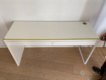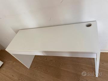 Scrivania Ikea Micke bianca, larghezza 142 cm profondità 50 cm, altezza 75 cm.