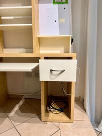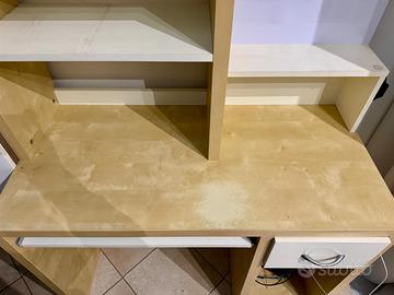 Vendo scrivania modello Mikael di IKEA, colore bianco e legno, in buone condizioni.