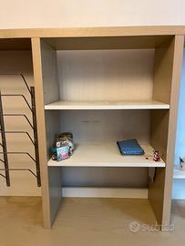Solo piccola incisura sul piano di lavoro; compresa di mobiletto su rotelle con cassetto, lavagna magnetica, ripiani e porta documenti/cartelline. Sedia non compresa