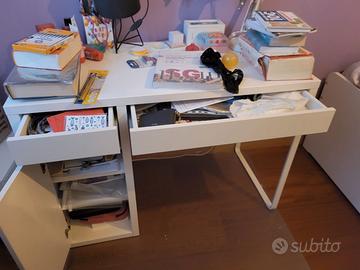 Vendo scrivania ikea modello micke usata pochissimo, bianca, 105 x 75 cm, profondità 50 cm. Disponibile eventualmente tappeto ikea trasparente per evitare strisci sul pavimento dalla sedia.