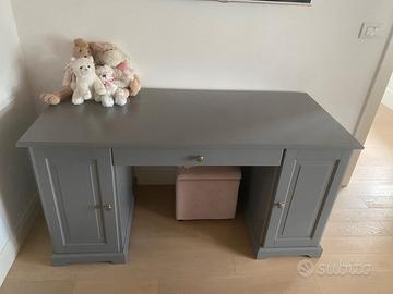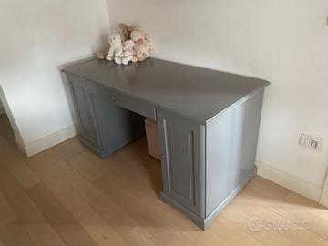 Privato vende una scrivania in legno con cassetto centrale e ante laterali con ripiano centrale. Colore grigio. Misure: LxPxH 145x64x74 cm. Marca Ikea La scrivania si smonta molto facilmente. Prezzo 200 euro.
