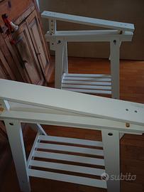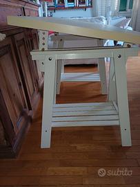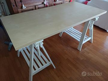 Vendo scrivania composta da tavola in truciolato colore rovere, e da 2 cavalletti regolabili in altezza , in legno colore bianco. i cavalletti presentano lievi segni di usura superficiali ma non di ammaccatura o scheggiatura. Misure: Tavola : Lunghezza 150 cm, larghezza 75 cm, altezza 3,5 cm Cavalletti: lunghezza 70 cm, larghezza 44,5 cm, altezza minima 73 cm, altezza massima 92, 5 cm. Non effettuo spedizioni. Il ritiro è a carico esclusivo dell'acquirente in zona Monteverde - Roma