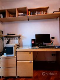 Possibile unire ulteriore cassettiera con 2 cassetti 40x55 ed eventuali libreria 220x72x40, 2 mensole e un mobile aperto con 3 scomparti