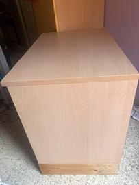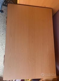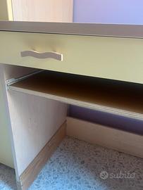 Vendo scrivania in legno chiaro con ampio piano di lavoro e cassetto frontale. Ideale per cameretta, studio o postazione PC.