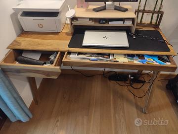 scrivania in legno con 2 cassetti e un vano porta oggetti. Misure:L120xP50xH80 cm