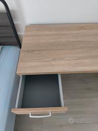 Vendo scrivania in legno compatto , acquistata 1 anno fa, ma con utilizzo effettivo di 2 settimane per il resto é stata tenuta in garage. Come si nota dalle foto la scrivania é corredata da cassettiera molto capiente, le dimensioni sono ottime per qualunque metratura di stanza. Non presenta segni di usura di alcun genere.