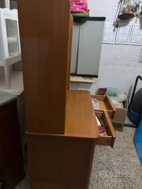 Scrivania in legno con libreria da appoggio