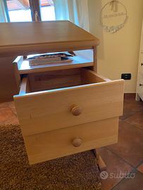 Scrivania di legno moto resistente con piano inclinabile. 2 cassetti + ripiano sopra i cassetti Ha un segno sul piano Misure : piano : 116 cm Piano + 2 piedini: 125