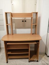 Scrivania in legno chiaro con porta pc e porta cd, usata, conservata bene e in buone condizioni.