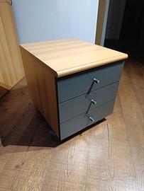SCRIVANIA IN LEGNO E CASSETTIERA CON ROTELLE
