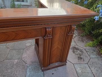 Scrivania in legno fatta anni anni 70 con decorazioni incise a mano