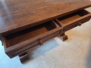 Bellissima e importante scrivania artigianale anni 60 in vero legno massello. Robustissima. Ha 2 cassetti. Dimensioni cm 160x70 altezza cm 81.