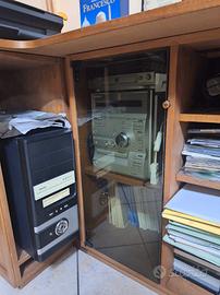 Scrivania in legno. Lavorazione artigianale Fatta su misura con particolari sui lati. cassettiera con 5 cassetti. vetrina, alloggio case PC, piano estraibile per tastiera.
