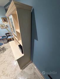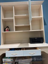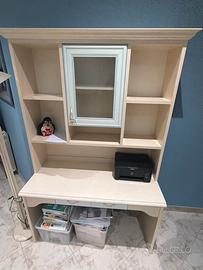 Vendo scrivania in legno chiaro completa di alzata con ripiani e sportello, ideale per studio, ufficio o cameretta. Il mobile è solido, funzionale e ben tenuto, con ampio piano di lavoro e spazio contenitivo superiore per libri, documenti o oggetti vari. ✔️ Dotata di cassetti ✔️ Spazio inferiore utilizzabile per contenitori o stampante ✔️ Stile classico e versatile ✔️ Normali segni di utilizzo, ma in ottime condizioni