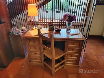 VENDO SCRIVANIA IN LEGNO NATURALE - NOCE COMPRESA SEDIA IN LEGNO E PELLE NATURALE CON 8 CASSETTI. VENDO CAUSA TRASLOCO: OTTIMO STATO