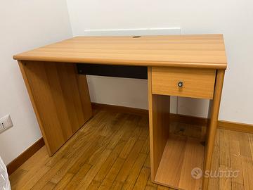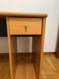 Vendo scrivania in legno, usata ma in buone condizioni apparte per la parte sotto il cassetto come in foto che è un po’ rovinata Per informazioni chidete pure