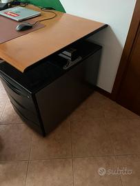 Scrivania in legno massiccio 80x140 cm alta 70/73cm con cassettiera in plastica profonda 70 cm, larga 40 cm e alta 50 cm.