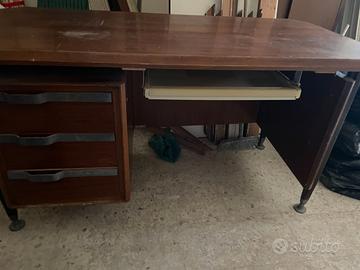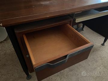 La scrivania è solida e robusta, in legno massello. Tre cassetti. Posto per la tastiera con cassetto chiaro estraibile. Le misure sono:149 L, 72 P, 78 H.