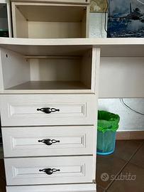 Vendo scrivania in legno, fatta da mobilificio, per cameretta in buone condizioni. La scrivania comprende cassettiera integrata e ulteriore armadietto per oggetti rimovibile. Le misure sono 153x75x73 cm.