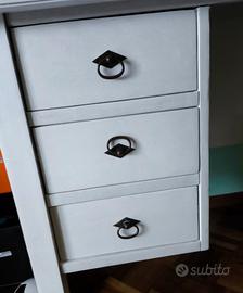 scrivania in legno dipinta a mano con vetro temperato e cassettiera misure 75x130x82 (PxLxH)