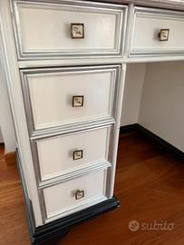 Vendo scrivania in legno laccata bianco con finiture in argento.