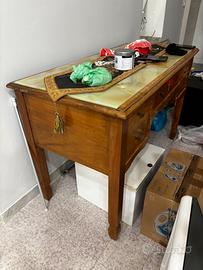 Vendo scrivania in legno tenuta bene vintage con piano in vetro. Ritiro in zona Dimensioni 120x60 altezza 75 circa
