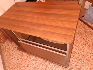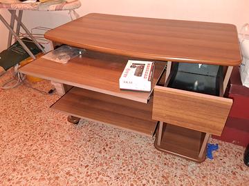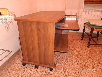 Scrivania in MDF per PC con rotelle come nuova, con porta tastiera e sottostante porta oggetti a scomparsa, pannello posteriore nascondi cavi e cassetto. Ottima finitura, parte anteriore del piano leggermente bombato. Dimensioni 120x60 cm