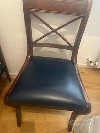 Vendesi scrivania di noce e pelle blu con tre cassetti (Altezza 77 - lunghezza 125 e larghezza 65) Completa una sedia di pelle blu.