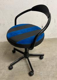Scrivania in noce massiccio, ideale per lavorare con PC, costruita su misura da un falegname artigiano, vendo con abbinata seggiola con rotelle e seduta imbottita rifatta da un artigiano tappezziere. Larghezza 108 Profondità 58 Altezza 75