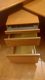 => cassettiera spostabile 44cm x 57cm prof x 59cm altezza; tre cassetti - quello in cima ha il vassoio per organizzare penne matite forbici graffette ecc - quello in basso ha le guide, può diventare un portadocumenti, oppure rimanere capiente cassetto.