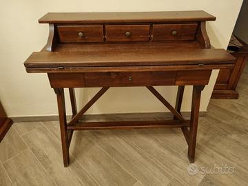 Vendesi mobile scrivania in noce misure 100 x 50 H 95. La scrivania è dotata di una piccola ribaltina