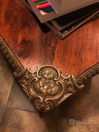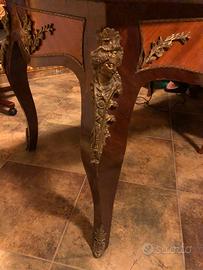 Scrivania in stile francese Luigi XV con bellissimi inserti in bronzo, in ottime condizioni. Misura cm 160 X 85 altezza cm 82. Prezzo 500,00 euro.