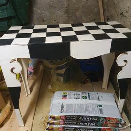 scrivania realizzata in pelle a scacchi nero/bianca lunga 80 cm. profondità 40 cm.. ritiro da parte dell'acquirente sul posto.