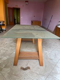 Scrivania in vetro con cavalletti in legno