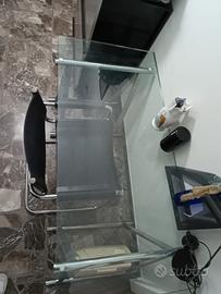 Scrivania da ufficio in ottimo cristallo spesso, con basi in acciaio. Include sedia in acciaio e cuoio nero. Tutto in ottime condizioni. Per ulteriori info sulle misure e foto contattare nei messaggi.