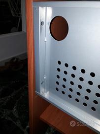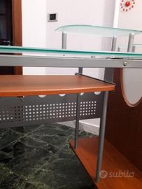 Scrivania in vetro e legno in ottimo stato con mensola pc. Larghezza: 60 cm; lunghezza:110
