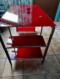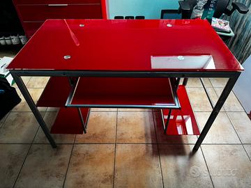 scrivania con elegante piano in vetro rosso e struttura in metallo resistente, presenta qualche graffio sulla parte superiore essendo stata di un bambino per tanti anni ma perfettamente robusta e resistente