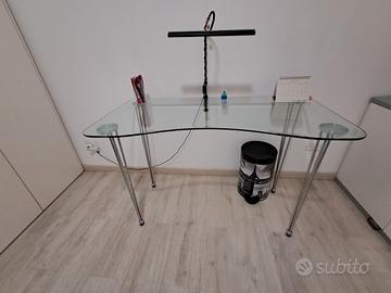 Vendo Scrivania in Vetro Temperato con gambe in Acciaio di colore grigio metallizzato, 120x60x76.