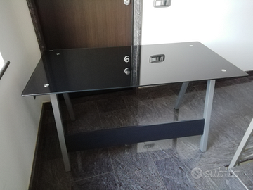 Scrivania in vetro temperato nero con porta computer. Gambe in metallo. Utilizzata pochissimo. Praticamente nuova (senza nemmeno un graffio). Misure 140 x 70 x 76 cm.
