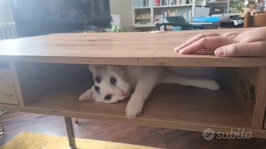 Tra i due cassetti si contrappone un vano a giorno. Il piano d'appoggio e cassetti sono in finitura Rovere. Raimondo conferma!
