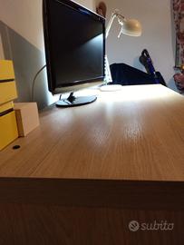 scrivania Ikea in legno chiaro dalle linee semplici e moderne. solida e spaziosa ideale per postazione PC per studio e ufficio dispone di 2 cassetti e porticina