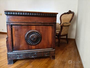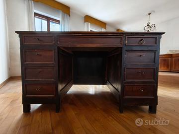 Scrivania di design. Materiale legno. Tenuta in buono stato. La superficie è la parte più "vissuta" e segnata. Le incisioni nel legno la rendono ideale come oggetto di arredo.