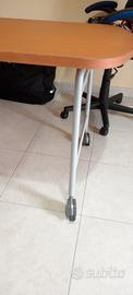 Vendo scrivania legno molto robusta. Vendo x cambio arredamento. ottima x camerette studi e negozio. Se apre e diventa doppia scrivania. Estraibile lato sotto con rotelle. Possibilità di vederla da vicino. No spedizione. Misure 150cmx 69 cm quella sopra. Quella sotto 130x69cm. Possibilità di metterla ad L o in lunghezza totale quasi 3 metri. Un affare tenuta benissimo.