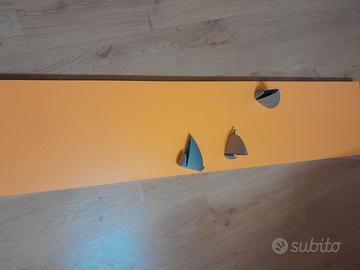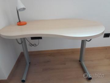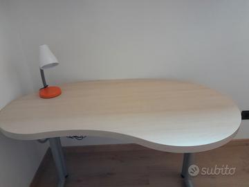 vendo scrivania color legno chiaro completa di pensile arancio da parete.