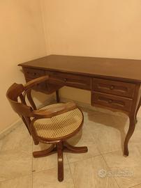 come da titolo vendo scrivania stile classico con sedia girevole la scrivania è lunga 130cm larga 60 e alta 80 cm trasporto a carico dell acquirente