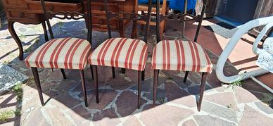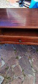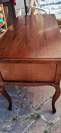 Stupenda scrivania in legno massello, 5 cassetti ( il pomello che non si vede è dentro un cassetto da mettere ). Gambe a zampa di leone. Sana e ben tenuta, qualche graffietto da usura. Misure : cm 130 x cm 62 x h cm 80. Volendo si possono abbinare le tre sedie ( a parte )nella foto , da ristrutturare nella verniciatura. Consegna a mano.