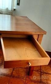 Scrivania in legno di pino massello naturale con cassetto. Dimensioni scrivania: larghezza: cm 100, profondità: cm 76, altezza: cm 80. Dimensioni cassetto: cm 46 x 51